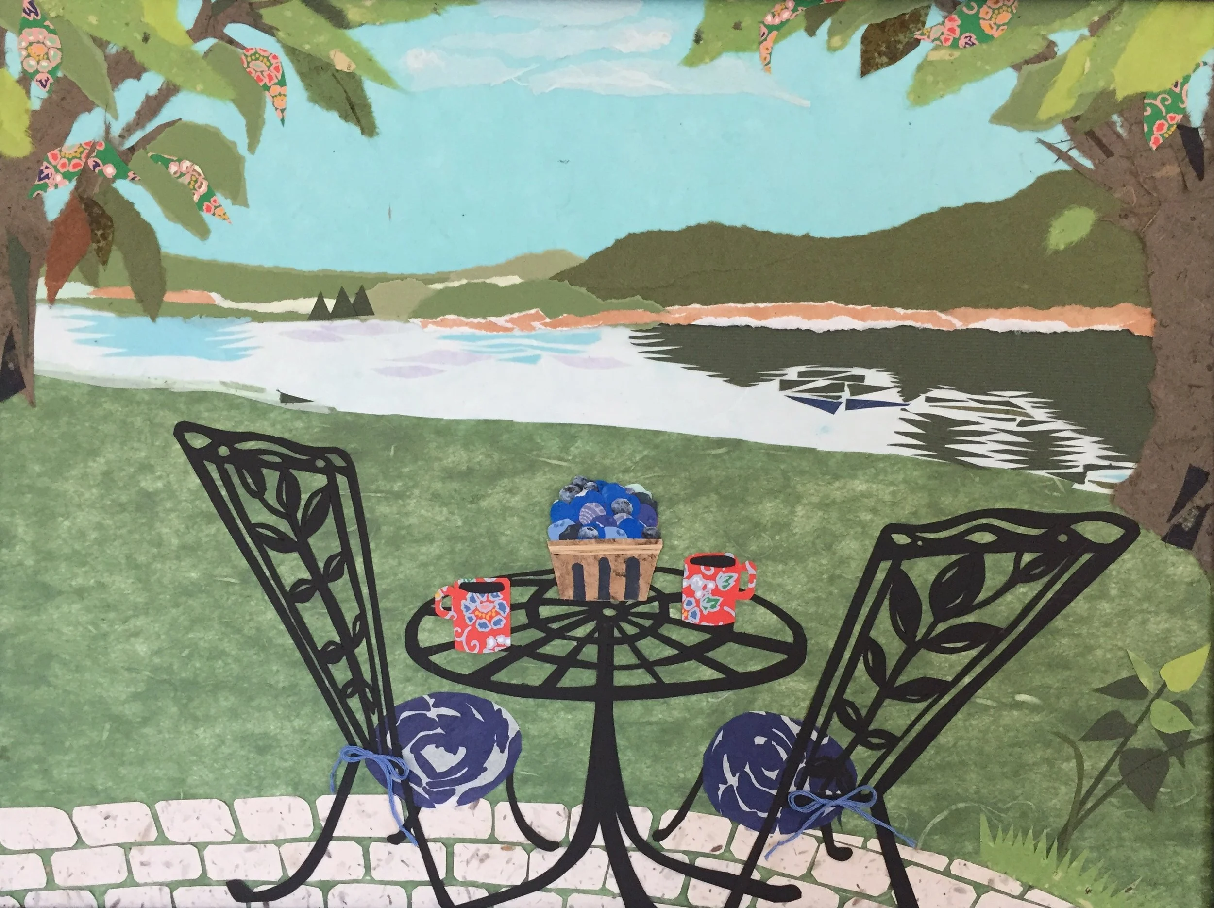 My handcrafted collage illustrations begin with my own photographic reference. Then, I develop energetic brown paper “sketches”. I like seeing the entire composition as silhouetted forms before proceeding to color — and I like using brown paper bags for the sketches, a material that is accessible and earth-friendly. Here are samples of reference, roughs and finished illustrations.